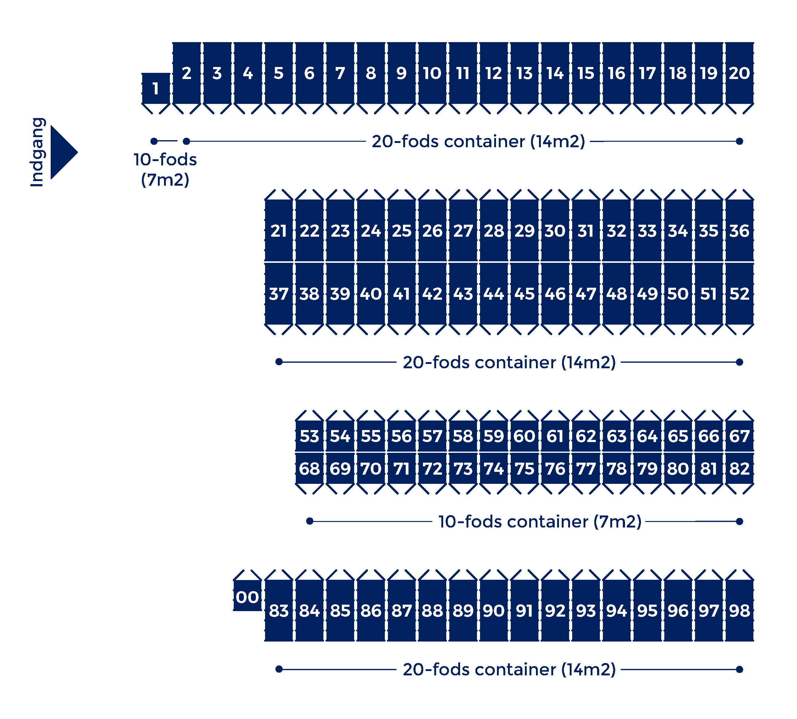 Vi har opbevaring i containere i flere forskellige størrelser, der passer alle behov. Lige fra opbevaring af en 1-værelses lejlighed til et stort hus. Vælg mellem 7m2 eller 14m2 containere. Se størrelsesangivelserne og guiden nedenfor. Du kan i øvrigt altid ringe til os for at få råd og vejledning i valg af størrelse på dit opbevaringsrum.